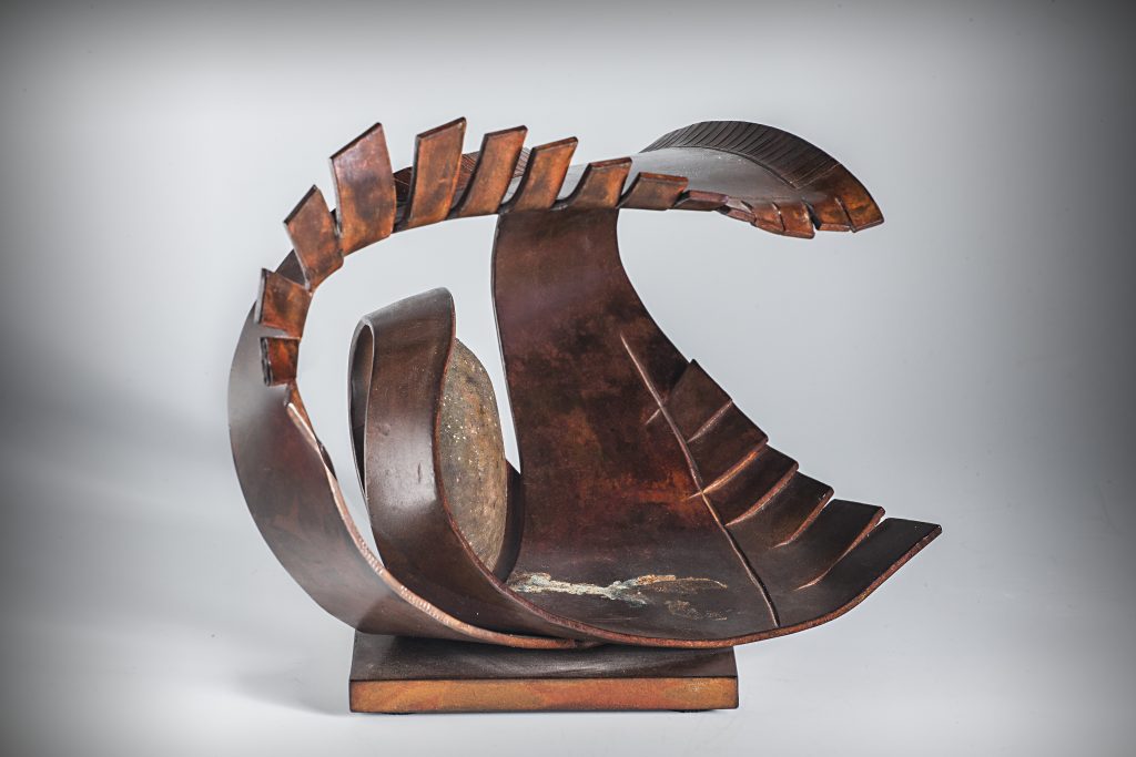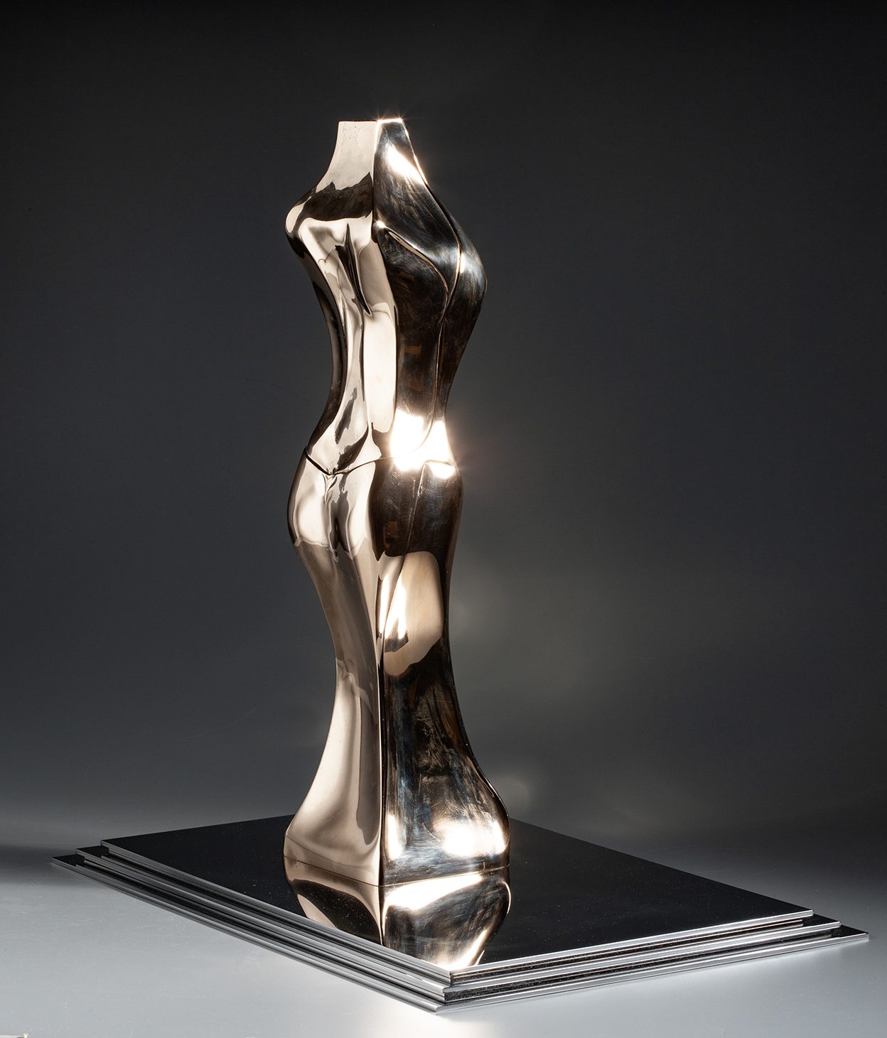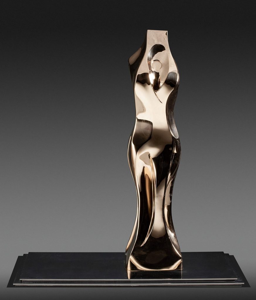 Materiales: Bronce pulido en brillo espejo y acero inoxidable pulido en espejo.
