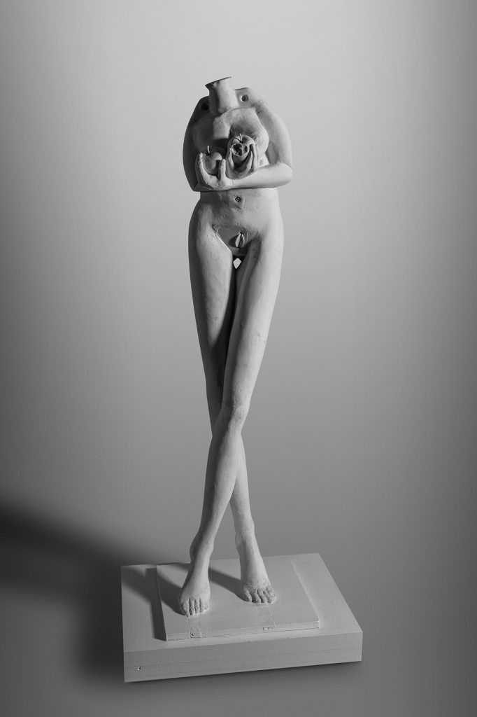 Está modelada incorporando escombros de saneamientos y elementos de origen vegetal en la composición. En esta obra el sentimiento de deseo se manifiesta mediante la combinación de acción, postura y simbolismo. En concreto el cruce de piernas y brazos y la inclinación hacia delante como acto reflejo de pudor estimula el deseo, incrementado por el simbolismo de las manzanas tapando los pechos y el cruce de los dedos de las manos.