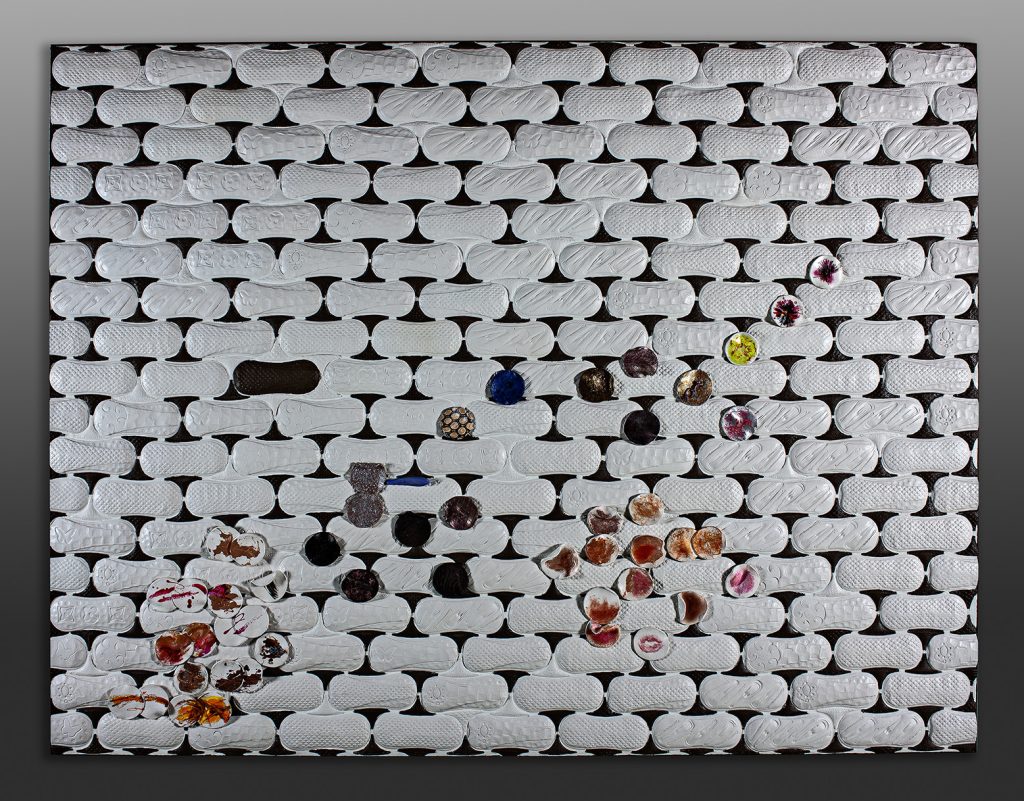 Materiales: cerámica con la técnica de decoración sigilata, pintura acrílica y cosméticos.
